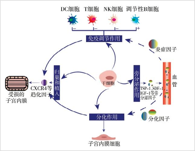 免疫調(diào)節(jié):干細(xì)胞具有免疫調(diào)節(jié)功能,可以減輕子宮內(nèi)膜的炎癥反應(yīng),改善內(nèi)膜環(huán)境。