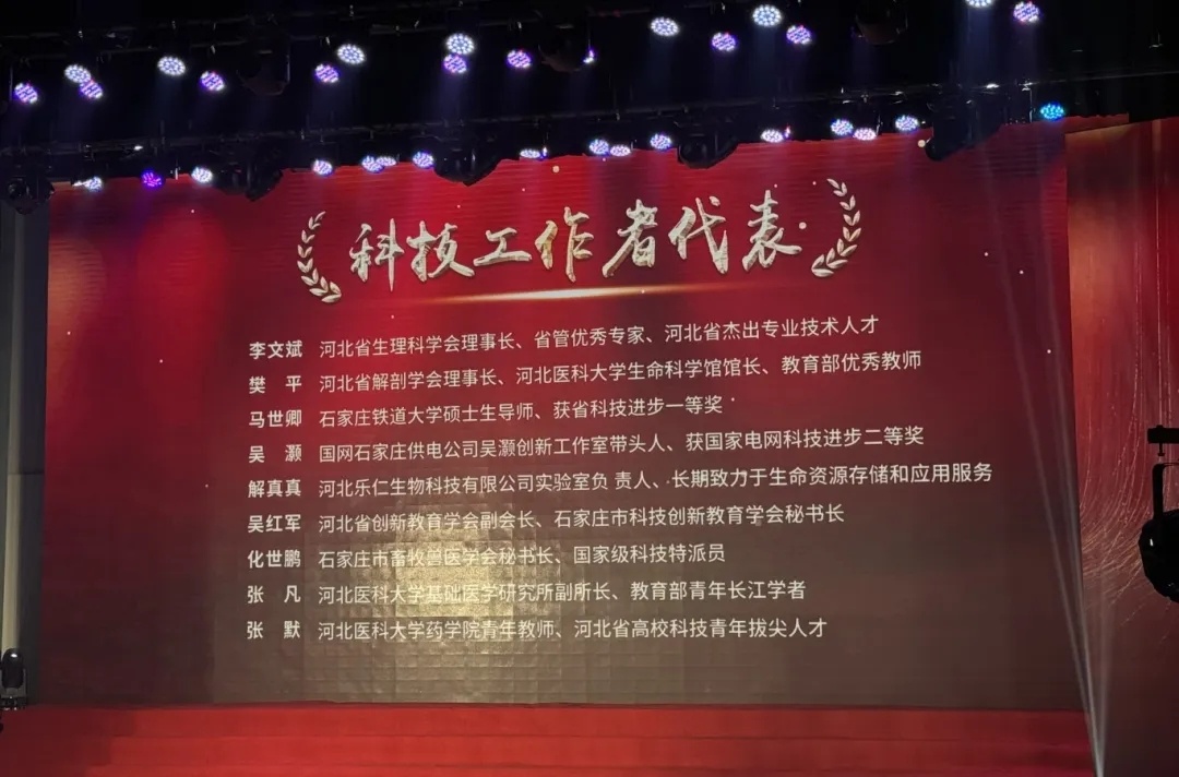 5月29日,由石家莊市科協(xié)、石家莊市科技局、共青團(tuán)石家莊市委、河北醫(yī)科大學(xué)主辦,石家莊市軌道公司、石家莊科技創(chuàng)新教育學(xué)會(huì)、河北省思辯語(yǔ)言學(xué)會(huì)協(xié)辦的“致敬科技工作者”— 石家莊市2024年慶祝全國(guó)科技工作者日暨唱響科學(xué)家精神主題展演活動(dòng)在河北醫(yī)科大學(xué)舉行。其中樂(lè)仁生物實(shí)驗(yàn)室副主任解真真被選為優(yōu)秀科技工作者代表,接受紀(jì)念獎(jiǎng)牌,并由少先隊(duì)員代表為其敬獻(xiàn)紅領(lǐng)巾。