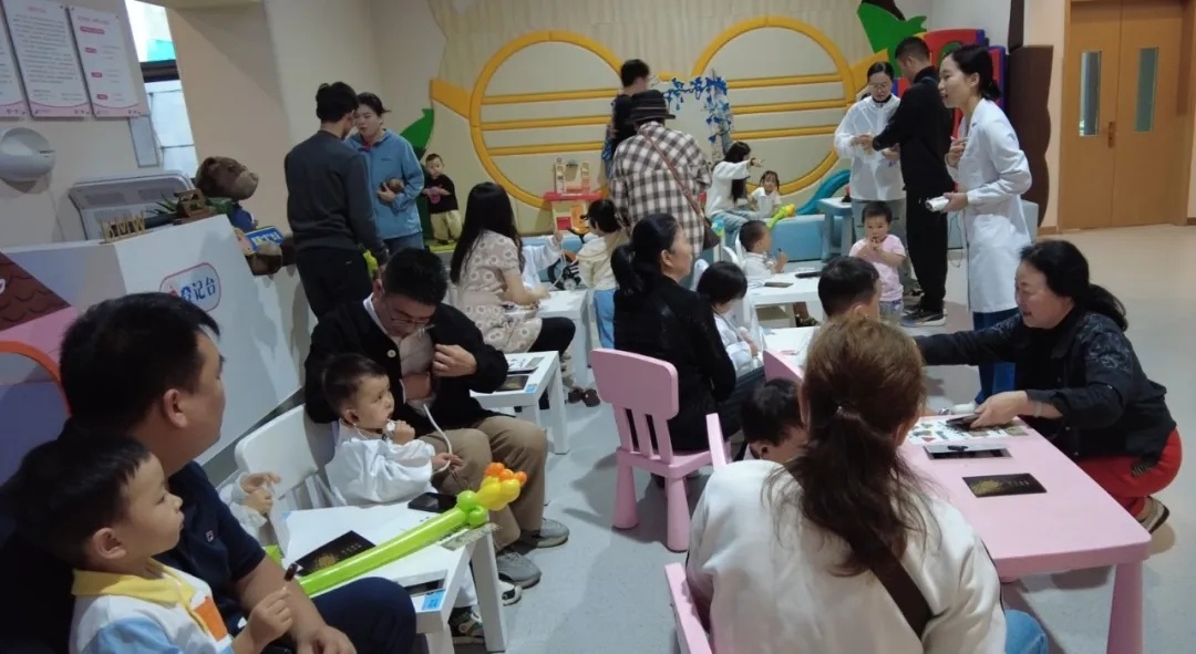 活動邀請臍寶們快樂體驗“小小醫(yī)生”職業(yè)。臍寶們身穿小小白大衣,帶著聽診器,扮演“醫(yī)生”角色,現(xiàn)場妙趣橫生,歡笑連連。