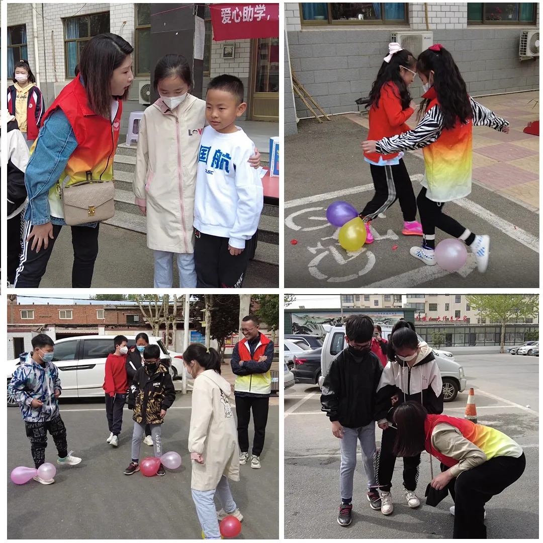 活動中,志愿者與困境兒童熱情互動,一起玩踩氣球、“我比你猜”、“二人三足”等游戲,孩子們在游戲中活潑可愛,大家相互配合,玩得其樂融融,很好地促進了志愿者與孩子們的情感交流。