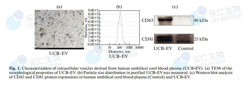 從臍血血漿里提取了 UCB-EV,帶著 CD63、CD81 等標(biāo)志性蛋白。